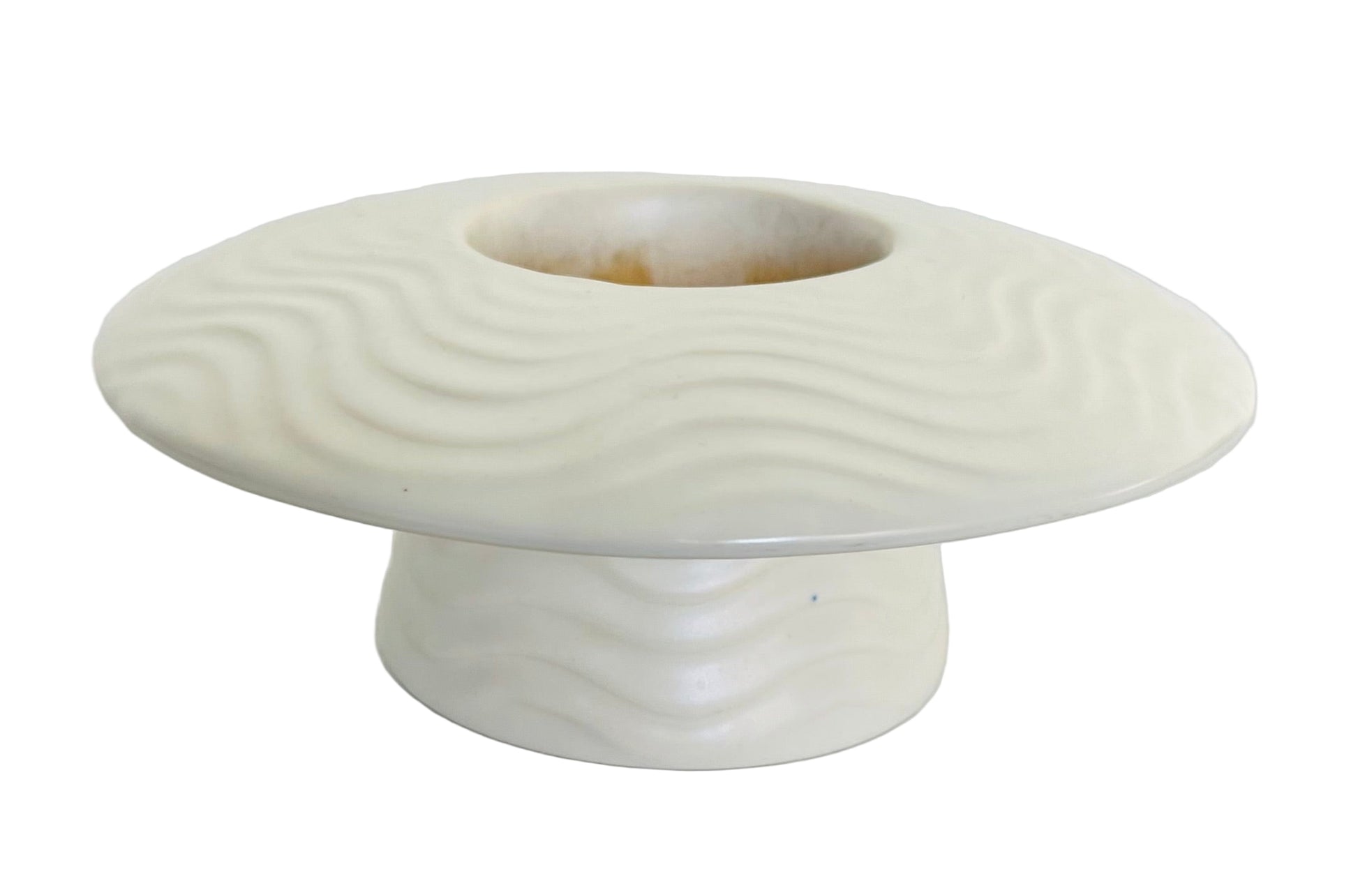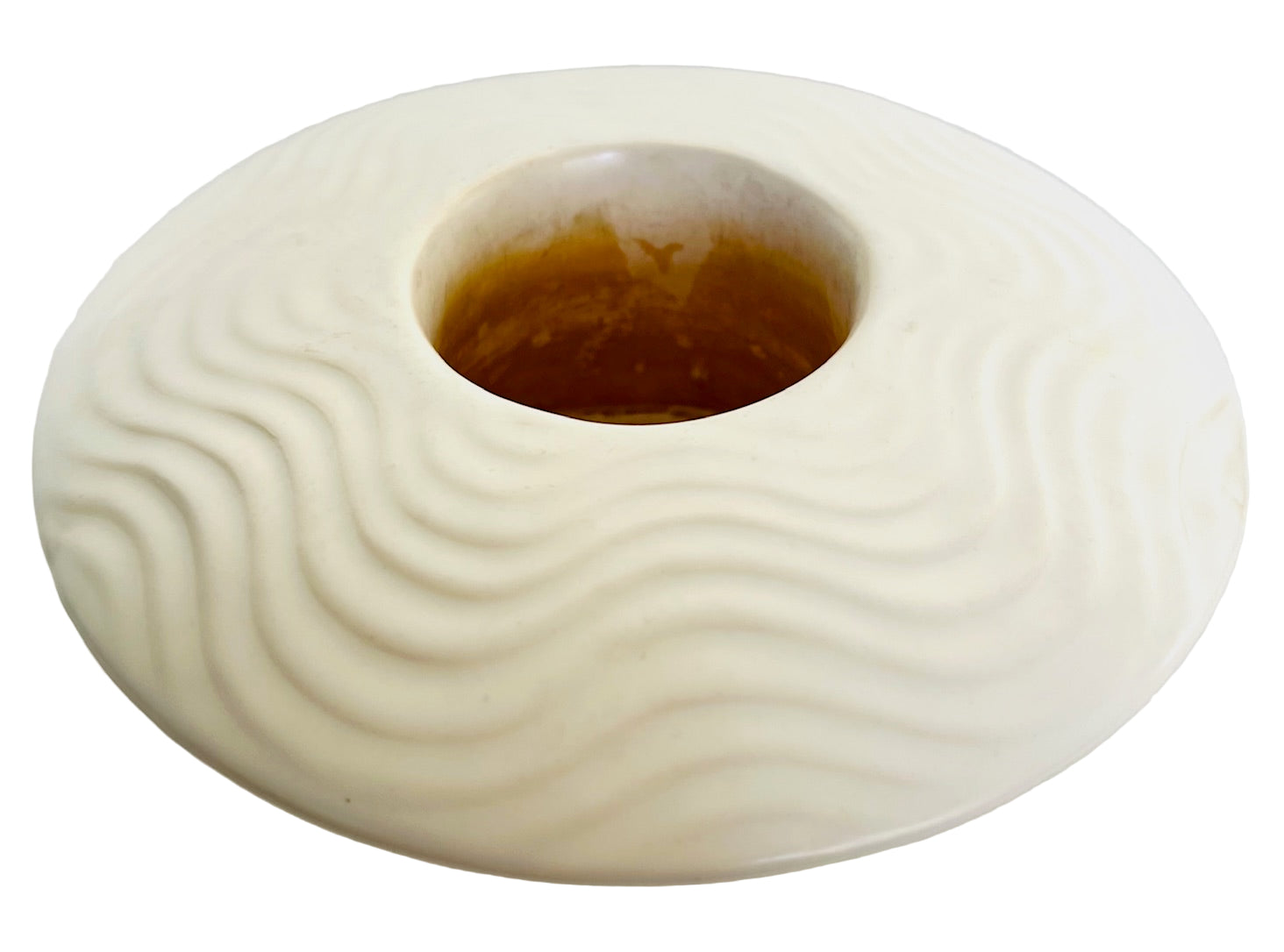 A Shorter And Sons small circular posy vase with a series of ribs around its body and finished in a white glaze.
