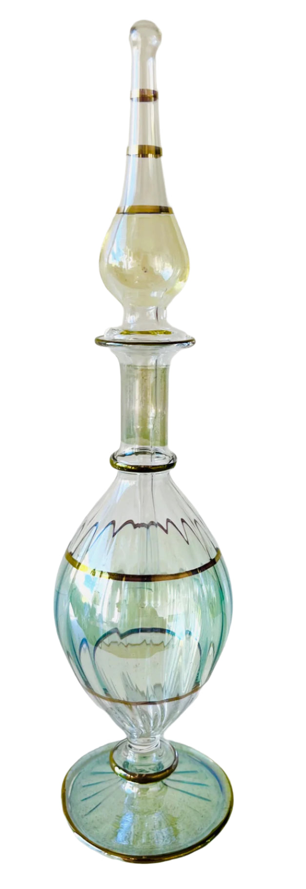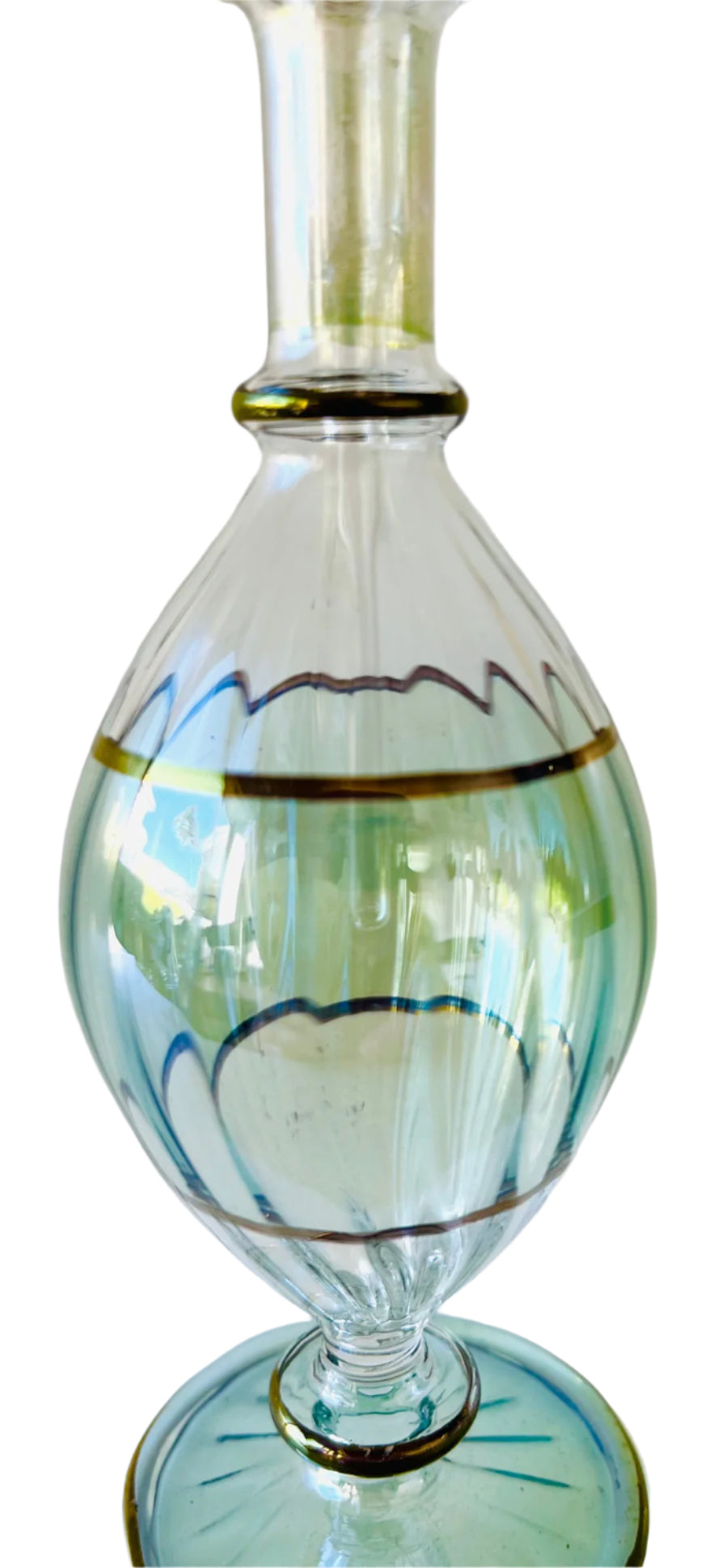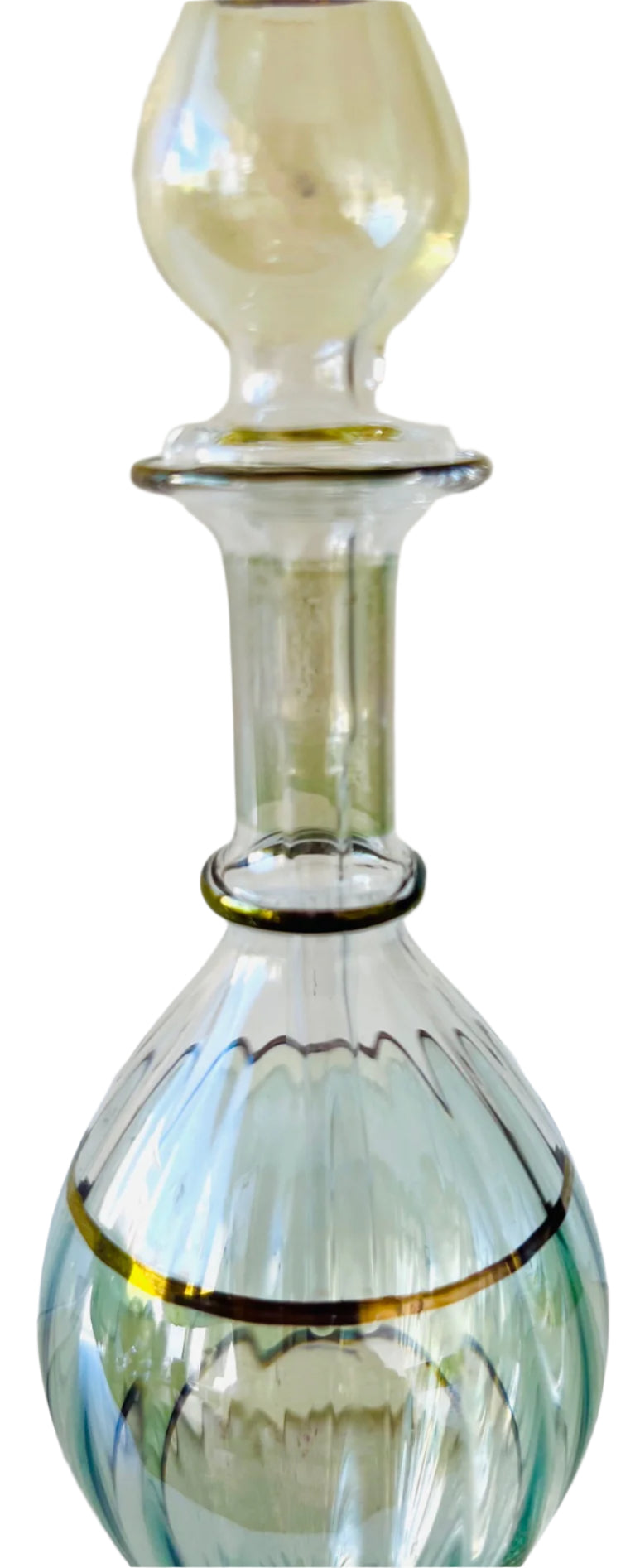 Hand-Blown Green And Gold Glass Perfume Bottle
